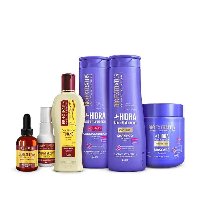 Kit que reúne produtos com ativos poderosos como Ácido Hialurônico e Tutano que vão hidratar profundamente, devolver maciez, brilho e saúde para os cabelos ressecados.